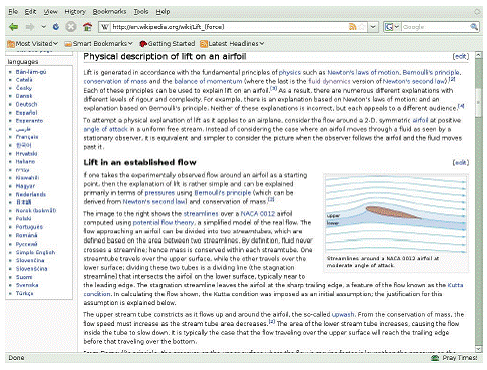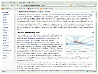 Bagi kita yang cukup teliti dalam membaca dan mencari informasi, kita dapat memperoleh penjelasan yang cukup detail tentang bagaimana cara sayap pesawat itu bekerja, atau bagaimana udara dapat mendorong sayap agar pesawat terbang tetap berada di udara. Pada Gambar 6.12 di perlihatkan halaman 'Lift (Force)' di Wikipedia berbahasa Inggris yang menjelaskan bagaimana sayap pesawat terbang itu bekerja.