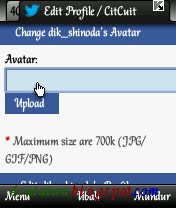 + Nah, disitu ada kotak uploadnya, pilih file gambar yang mau dijadikan foto profil twittermu, terus klik upload