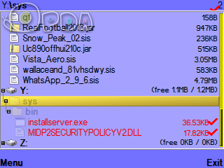 + Copy file installserver.exe dan MIDP2SECURITYPOLICYV2.dll ke folder Y:/sys/bin/